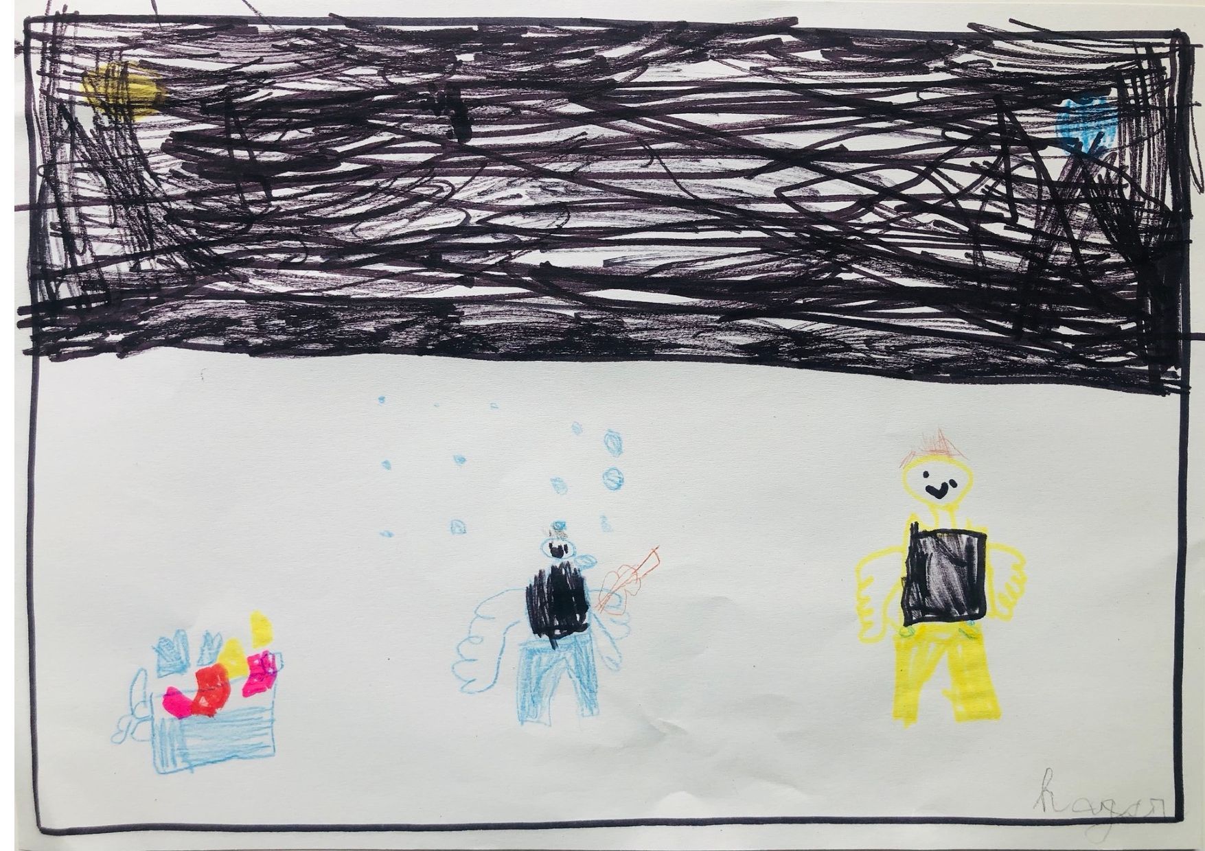 Dessins réalisés par Atouma, Bouréma, Issa, Gaïa, Rima, Nihed, Hagar, Roxane, Théo, Younes, Manola, Liya, Ilyana et Marec, et leur professeur Ambre, de l'école maternelle Prévoyance, Paris (19e).